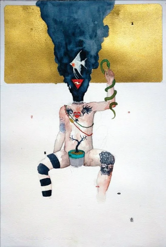 Antagônico - 2018 Aquarela e spray dourado s/ papel 56 x 38 cm